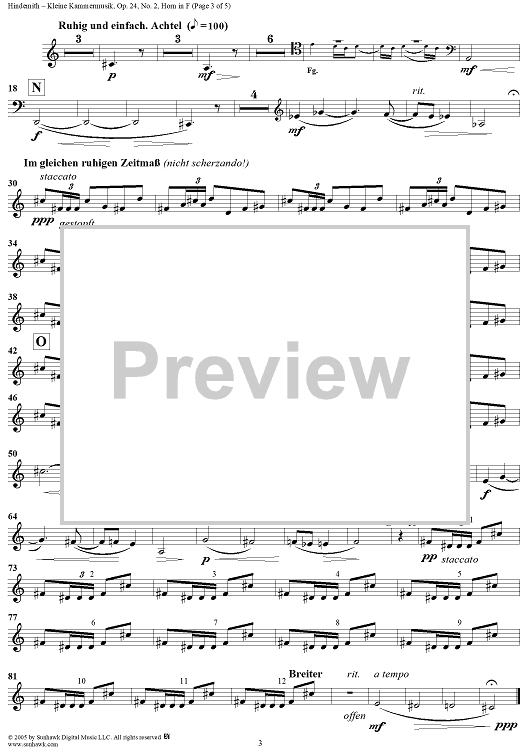"Kleine Kammermusik für fünf Bläser - Horn" Sheet Music by Paul Hindemith