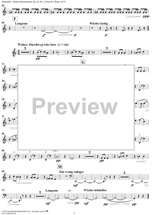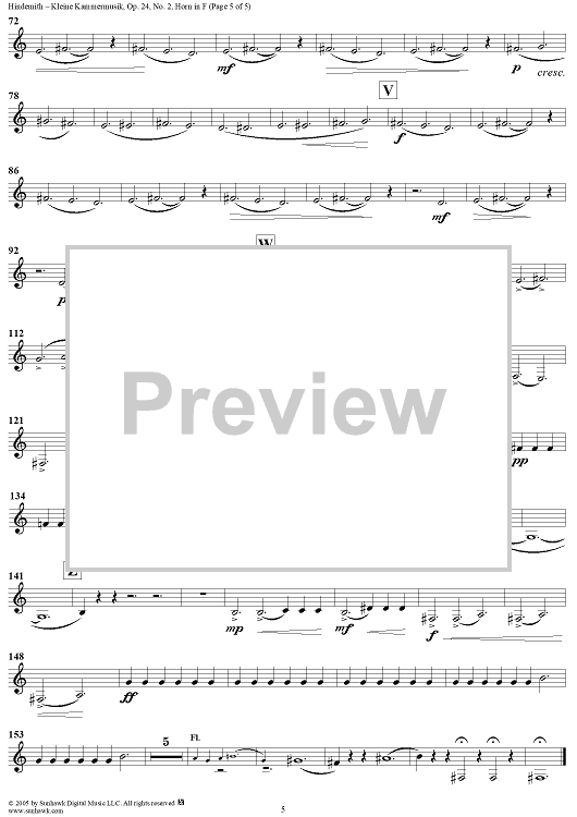 Digital Sheet Music for Kleine Kammermusik für fünf Bläser - Horn by Paul Hindemith scored for Woodwind Quintet; id:311241