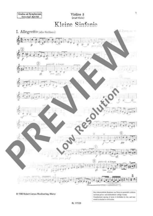 "Kleine Sinfonie - Violin Iii" Sheet Music by Paul Juon