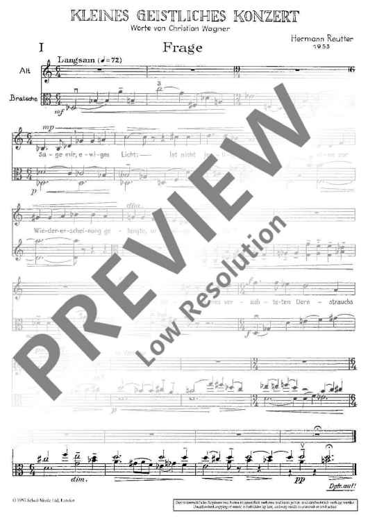 Digital Sheet Music for Kleines geistliches Konzert by Hermann Reutter scored for Alto And Viola; id:473177