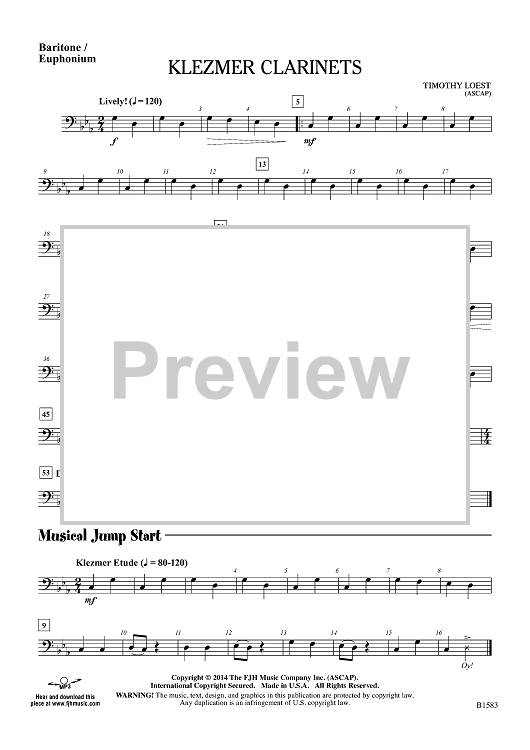 Digital Sheet Music for Klezmer Clarinets - Baritone/Euphonium by Timothy Loest scored for Concert Band; id:445780