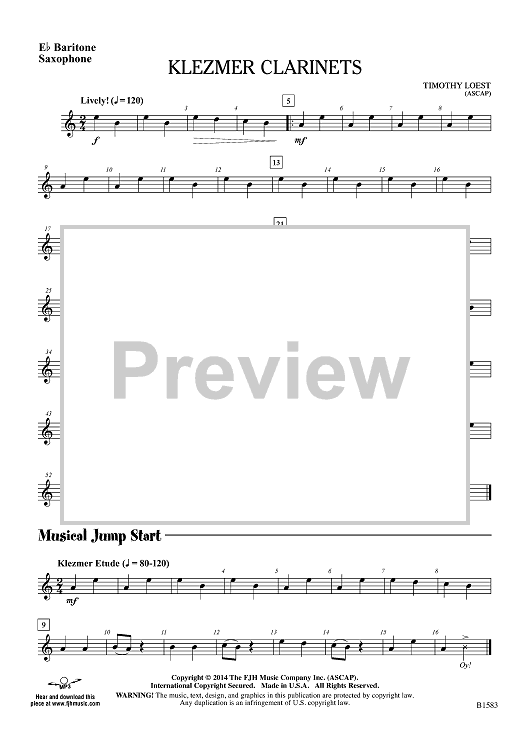 "Klezmer Clarinets - Eb Baritone Sax" Sheet Music by Timothy Loest