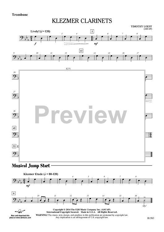 "Klezmer Clarinets - Trombone" Sheet Music by Timothy Loest