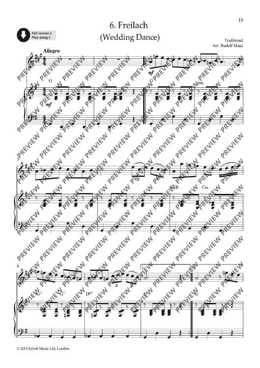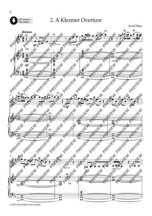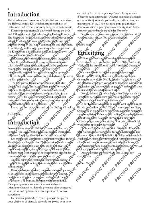 Rudolf Mauz presents a wide-ranging collection of Klezmer tunes and Jewish melodies for clarinet. The collection features pieces for clarinet and keyboard accompaniment, as well as a selection of clarinet duets including well-known traditional pieces and original numbers by Rudolf Mauz. The music has been carefully edited to create stylistic, authentic arrangements. Demonstration recordings of all tunes as well as play-along versions are available as downloads.