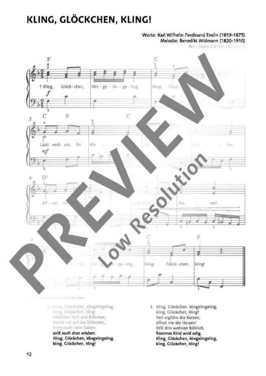 Digital Sheet Music for Kling, Glöckchen, kling in F major by Benedikt Widmann, Hans-Guenter Heumann scored for Piano; id:485705
