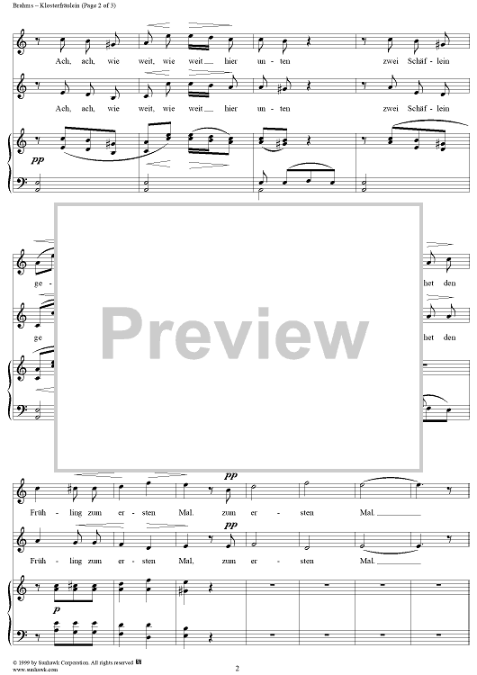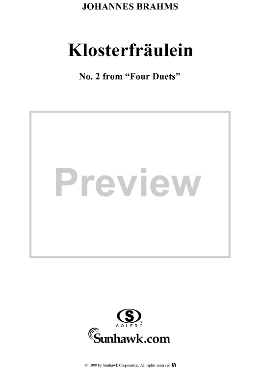 Digital Sheet Music for Klosterfräulein - No. 2 from "Four Duets" Op. 61 by , Johannes Brahms scored for Soprano/Alto/Piano; id:274935