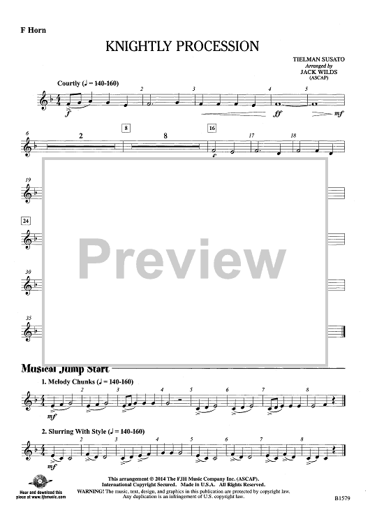 Digital Sheet Music for Knightly Procession (After Susato) - F Horn by Tielman Susato, Jack Wilds scored for Concert Band; id:445689