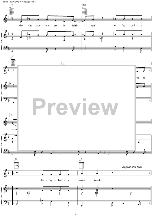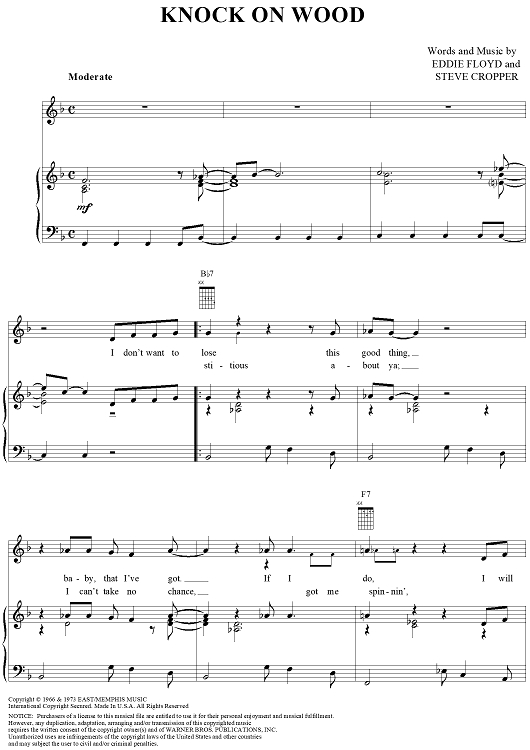 Digital Sheet Music for Knock On Wood by Steve Cropper, Eddie Floyd scored for Piano/Vocal/Chords; id:269806