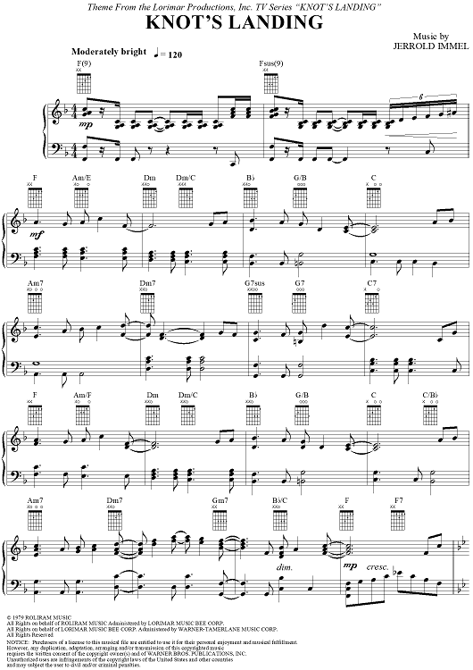 Digital Sheet Music for Knots Landing (Main Theme) by Jerrold Immel scored for Piano Solo; id:204431