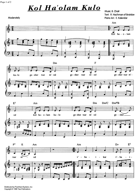 "Kol Ha'olam Kulo" Sheet Music by B. Chait