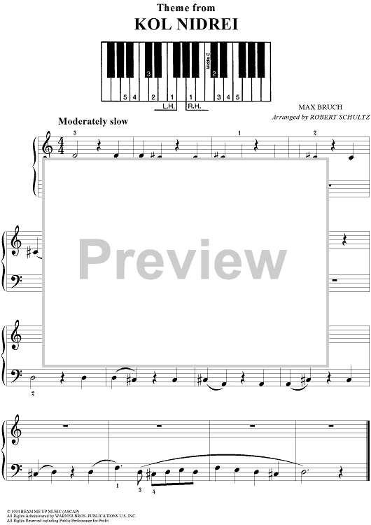 Digital Sheet Music for Kol Nidrei (Theme) by Max Bruch scored for Five Finger Piano; id:236361