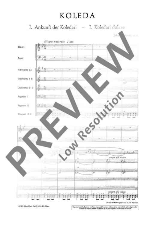 Digital Sheet Music for Koleda - Score by Jakov Gotovac scored for Men's Choir, Clarinet (eb/d), 2 Clarinets (b/a), 2 Bassoons And Timpani (tambourineo); id:487168