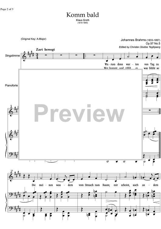 "Komm bald Op.97 No. 5" Sheet Music by Johannes Brahms