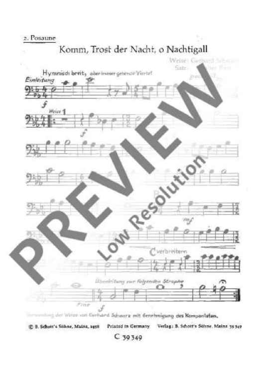 Digital Sheet Music for Komm, Trost der Nacht, o Nachtigall - Set of Parts by Walter Rein scored for Mixed Choir (ssa/ttbb), Children's Choir (s), Men's Choir (ttbb) A Cappella Or With Brass (2 Trp, 3 Trombones, Tuba Ad Libitum); id:488898