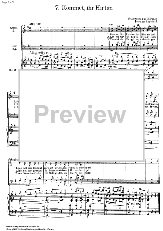 Digital Sheet Music for Kommet, ihr Hirten by , Louis Dité, Traditional scored for Choir/Organ; id:337645