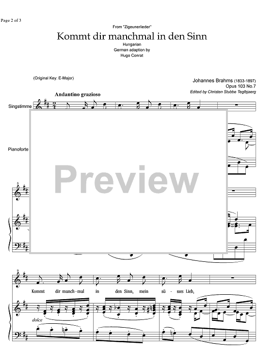 "Kommt dir manchmal in den Sinn Op.103 No. 7" Sheet Music by Johannes Brahms
