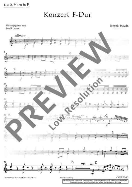 "Konzert F-Dur in F major - Horn I/ii" Sheet Music by Joseph Haydn