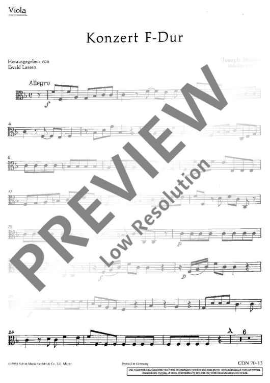 "Konzert F-Dur in F major - Viola" Sheet Music by Joseph Haydn