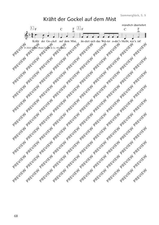 "Kräht der Gockel auf dem Mist" Sheet Music by Traditionell