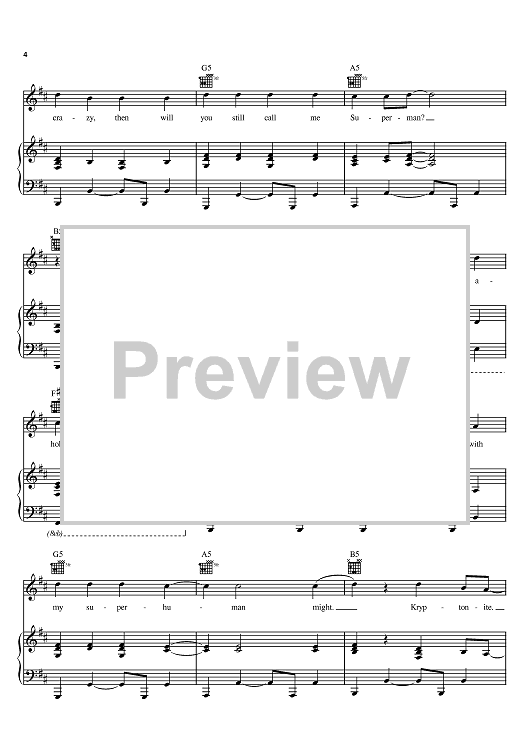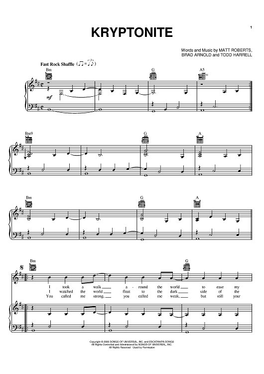 Digital Sheet Music for Kryptonite by 3 Doors Down, Matt Roberts, Brad Arnold, Todd Harrell scored for Piano/Vocal/Chords; id:394485