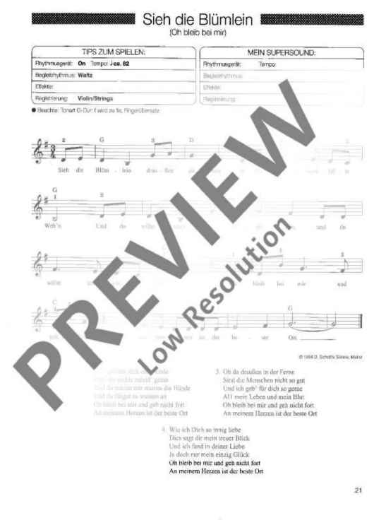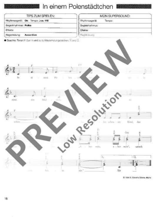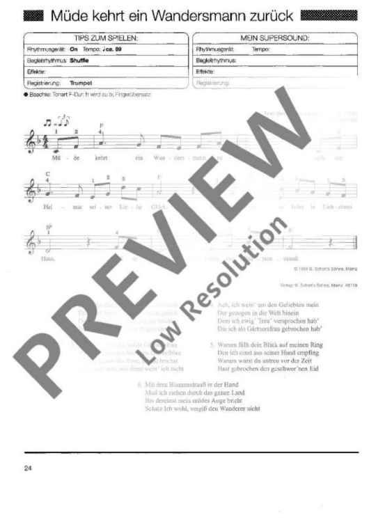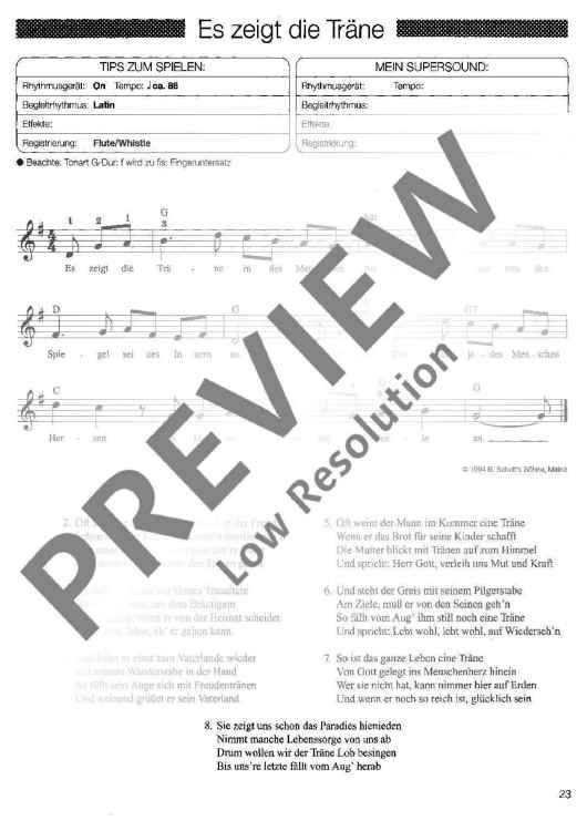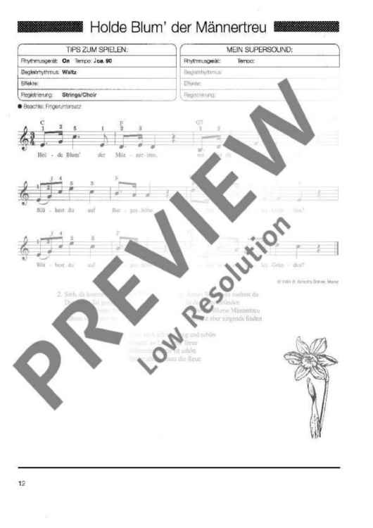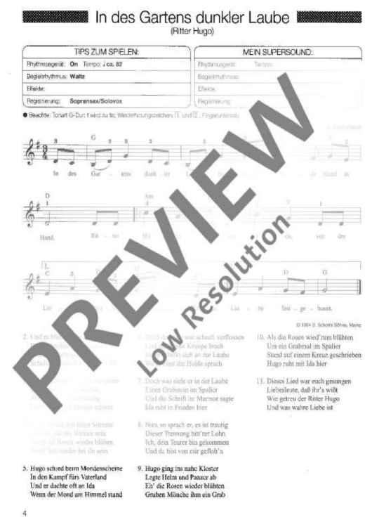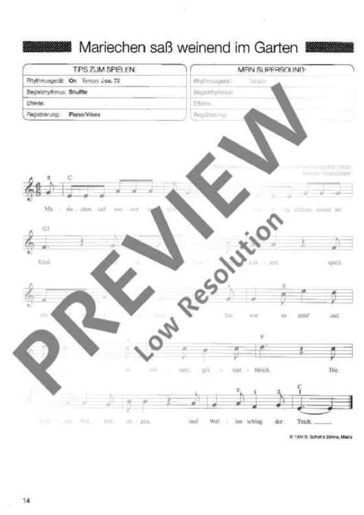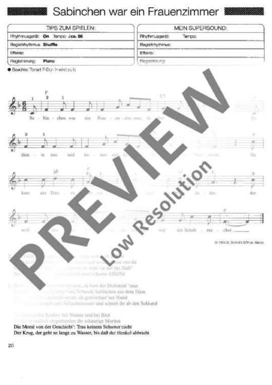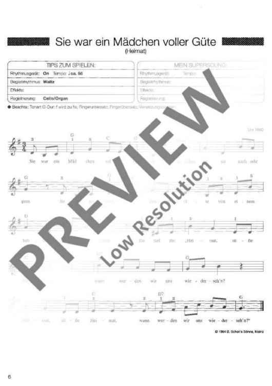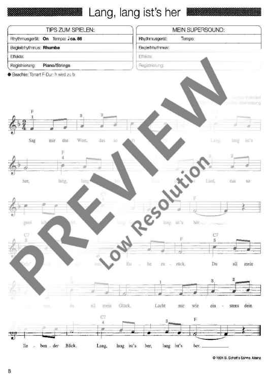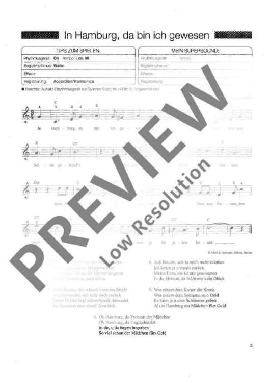 Keine Frage! Zu einem modernen, komfortabel ausgestatteten Keyboard gehören auch zeitgemäße, ansprechende Notenausgaben. Diese Serie ist für die Keyboards der neuen Generation maßgeschneidert, die die leicht spielbaren Arrangements im Supersound erklingen lassen. Die Ausstattung der Hefte dürfte alle Erwartungen eines Keyboarders erfüllen. Sie finden: Vorschläge zur Registrierung, zum Tempo, zur Begleitautomatik, zum Einsatz von Effekten, leicht spielbare Fingersätze, Hinweise zur Ausführung jedes Stückes und je eine Tabelle, in die Sie Ihre persönlichen Gestaltungsideen eintragen können. Die doppelseitige Einlage: zeigt Ihnen alle Griffe für den Einsatz der Einfinger-Akkord-Automatik, gibt Ihnen grundlegende Informationen über die Möglichkeiten Ihres Instruments, enthält speziell auf das Keyboard zugeschnittene "Tipps zum Üben", mit deren Hilfe Sie jedes dieser Stücke vorführreif spielen lernen und erklärt und übersetzt im "Mini-Lexikon" mehr als 60 Begriffe aus der Fachsprache des Keyboarders.