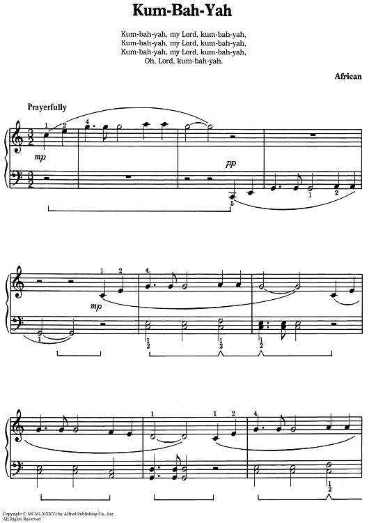 "Kum-Ba-Yah" Sheet Music by African American Spiritual