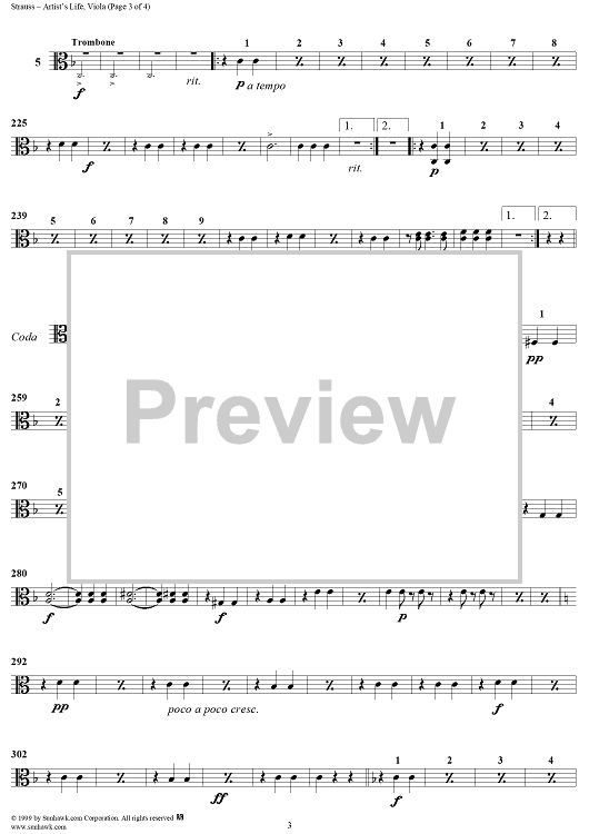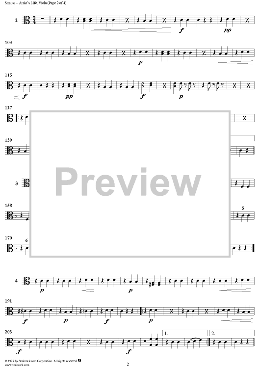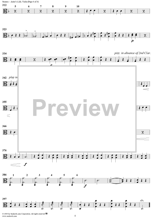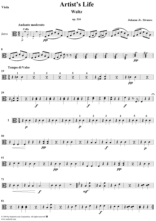 Digital Sheet Music for Künstlerleben (Artist's Life), Op. 316 - Waltz - Op. 316 - Viola by Johann Strauss II scored for String Quartet; id:266878