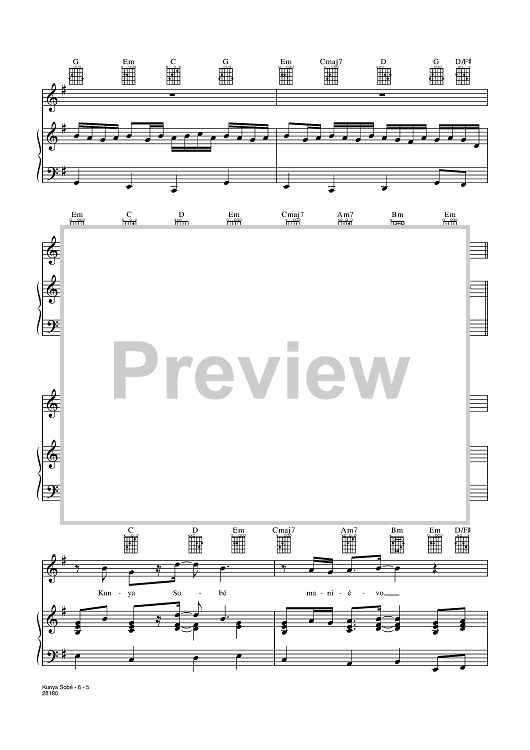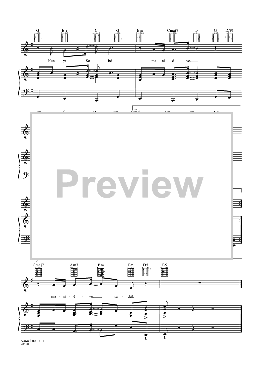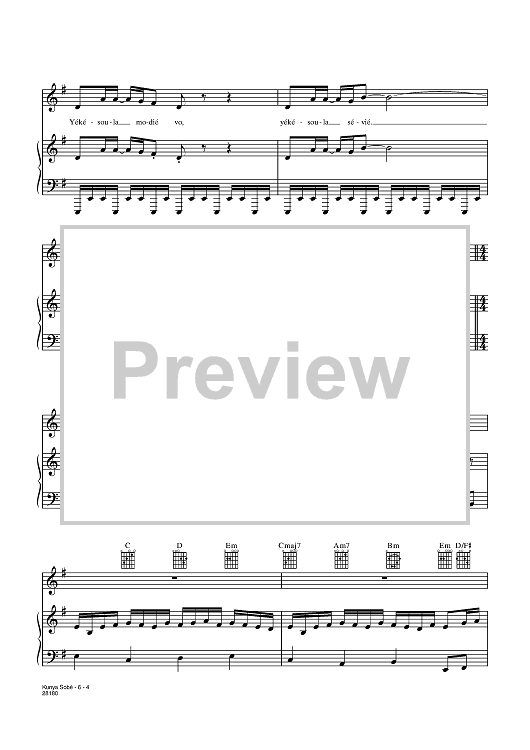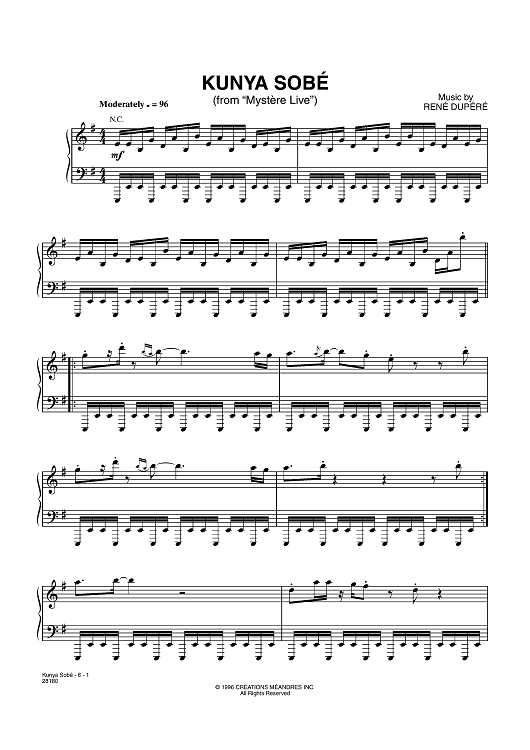 Digital Sheet Music for KUNYA SOBÉ (from “Mystère Live”) by René Dupéré scored for Piano/Vocal/Chords; id:436732