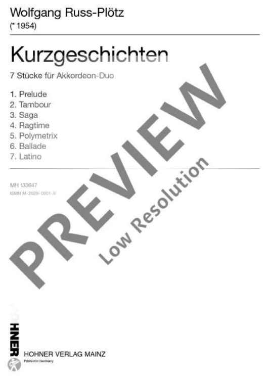 Digital Sheet Music for Kurzgeschichten by Wolfgang Russ-Ploetz scored for 2 Accordions (m Ii); id:476011