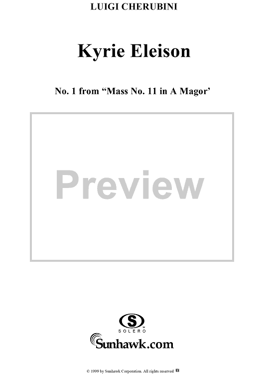 "Kyrie Eleison - No. 1 from "Mass No. 11 in A major"" Sheet Music by Luigi Cherubini