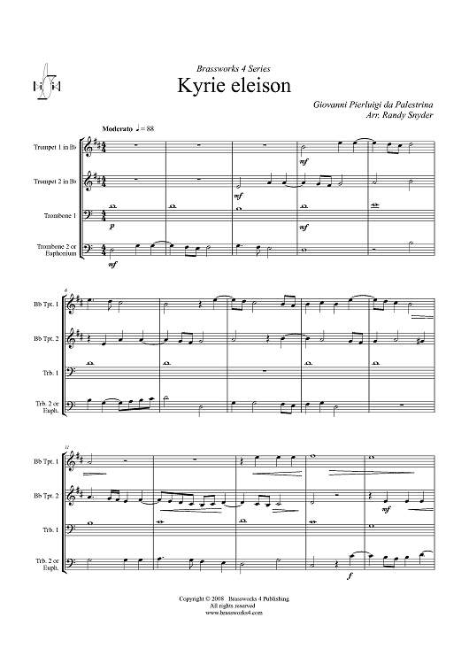 Digital Sheet Music for Kyrie eleison - Score by Giovanni Pierluigi da Palestrina, Randy Snyder scored for Brass Quartet; id:410327
