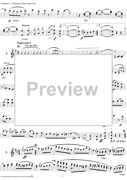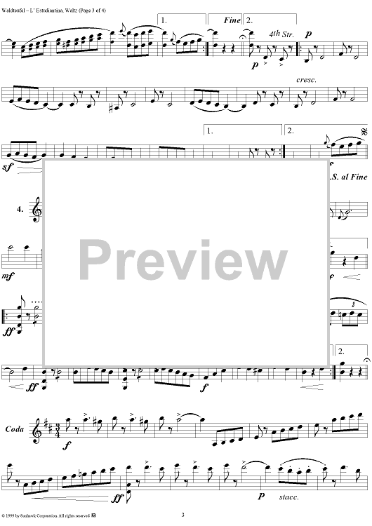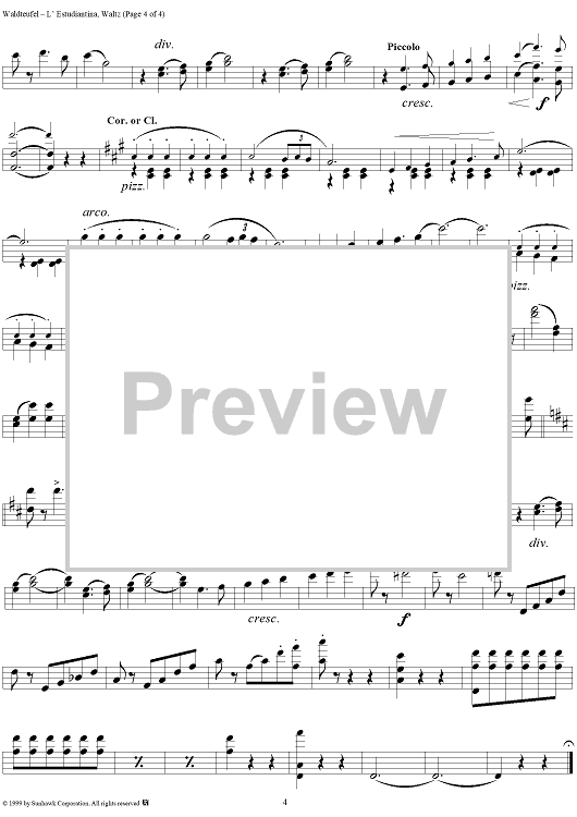 Digital Sheet Music for L' Estudiantina - Violin 1 by Emile Waldteufel scored for String Quartet; id:255109