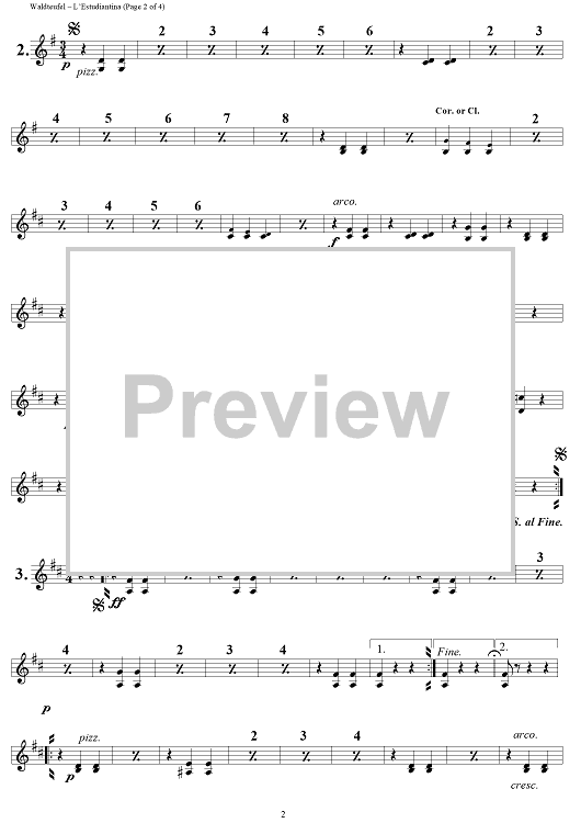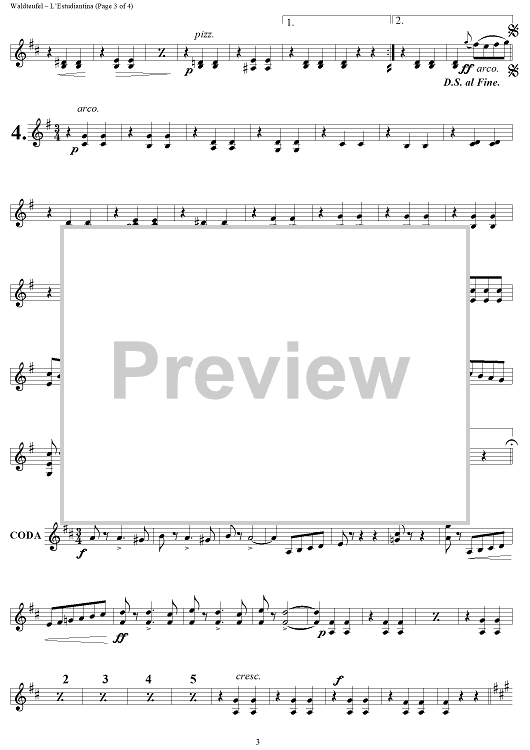 Digital Sheet Music for L' Estudiantina - Violin 2 by Emile Waldteufel scored for String Quartet; id:255126