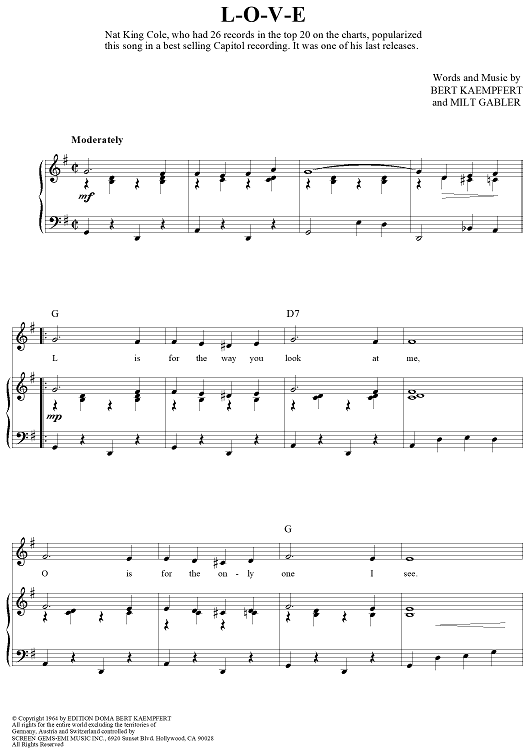 Nat King Cole, who had 26 records in the top 20 on the charts, popularized this song in a best selling Capitol recording. It was one of his last releases.