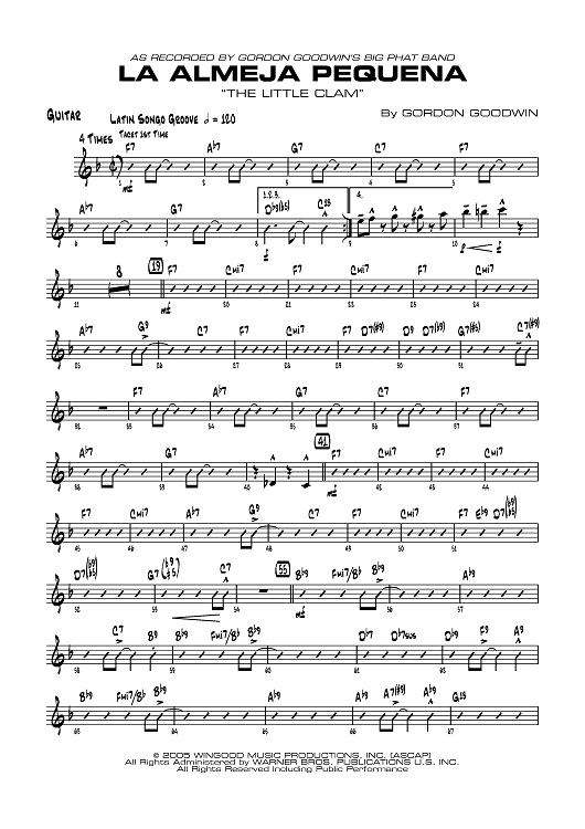 Digital Sheet Music for La Almeja Pequena ("The Little Clam") - Guitar by Gordon Goodwin, Gordon Goodwin's Big Phat Band scored for Jazz Ensemble; id:356111