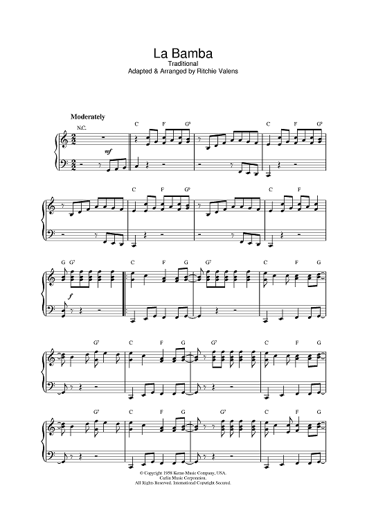 Digital Sheet Music for La Bamba by Ritchie Valens scored for Piano; id:375673
