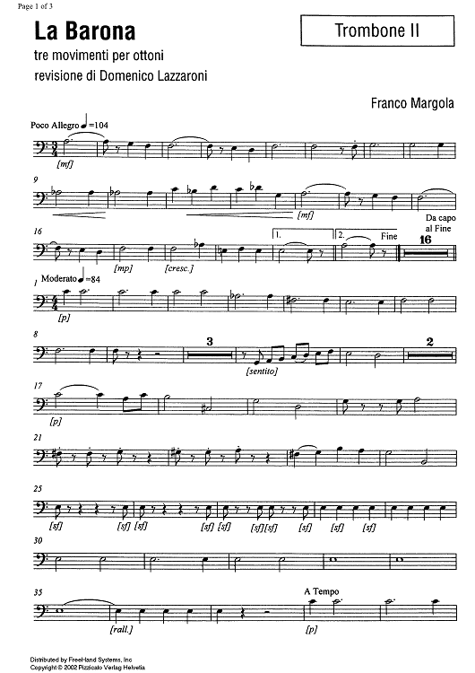 "La Barona - Trombone 2" Sheet Music by Franco Margola