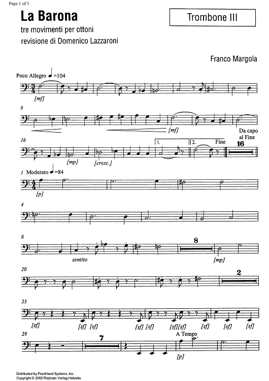 Digital Sheet Music for La Barona - Trombone 3 by Franco Margola scored for Brass Ensemble; id:351249