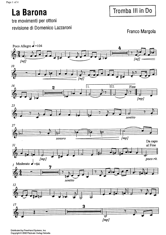 Digital Sheet Music for La Barona - Trumpet in C 1 by Franco Margola scored for Brass Ensemble; id:351246