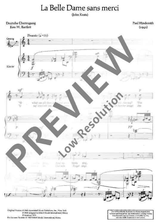 Digital Sheet Music for La Belle Dame sans Merci by Paul Hindemith scored for Soprano And Piano; id:473746