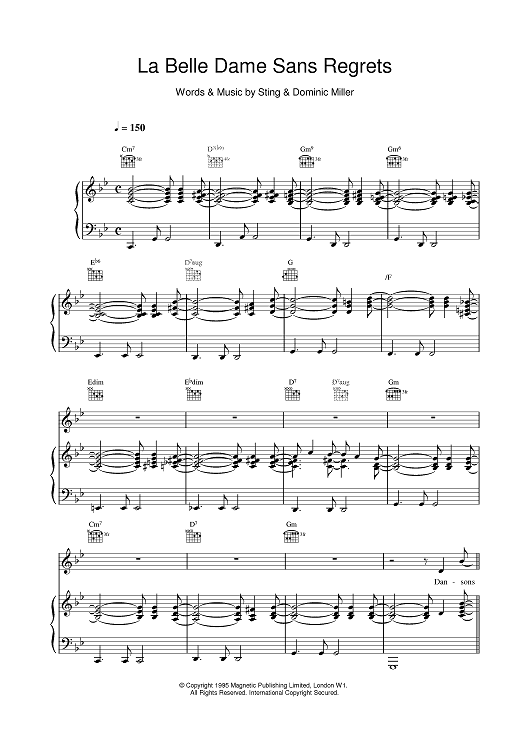 Digital Sheet Music for La Belle Dame Sans Regrets by Sting, Dominic Miller scored for Piano/Vocal/Chords; id:379718