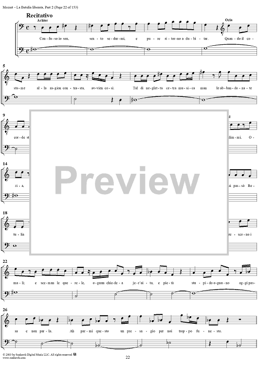 Digital Sheet Music for La Betulia Liberata, Part 2, K74c (K118) - Full Score by Wolfgang Amadeus Mozart, Metastasio scored for Chorus and Orchestra; id:292265