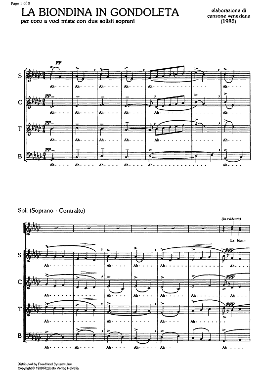 Digital Sheet Music for La biondina in gondoleta by , Albino Perosa, Traditional scored for SATB Choir; id:331207