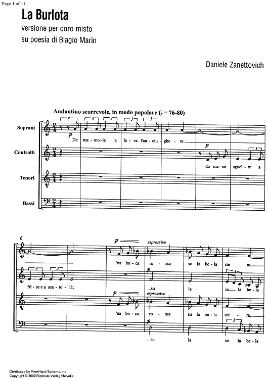 Digital Sheet Music for La Burlota - Score by , Daniele Zanettovich scored for SATB Choir; id:343512
