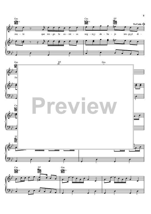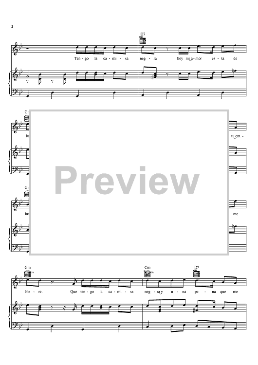 Digital Sheet Music for La Camisa Negra by Juanes scored for Piano/Vocal/Chords; id:383865