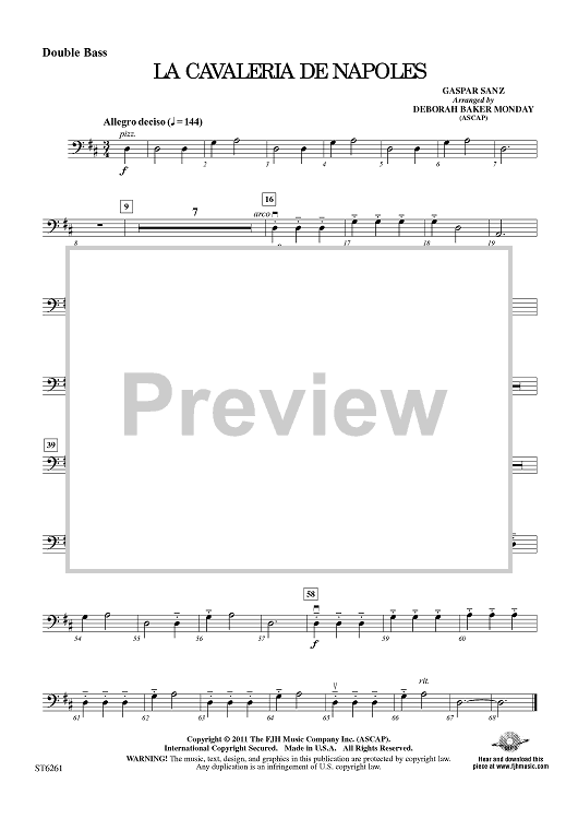 Digital Sheet Music for La Cavaleria de Napoles - Double Bass by Gaspar Sanz, Deborah Baker Monday scored for String Orchestra; id:421717