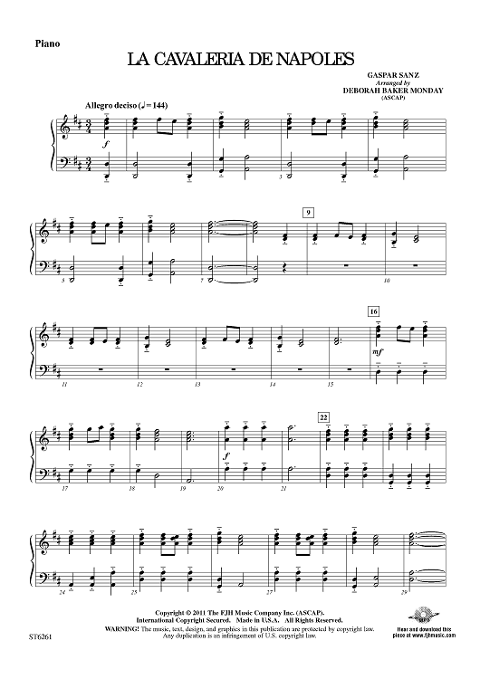 Digital Sheet Music for La Cavaleria de Napoles - Piano by Gaspar Sanz, Deborah Baker Monday scored for String Orchestra; id:421718