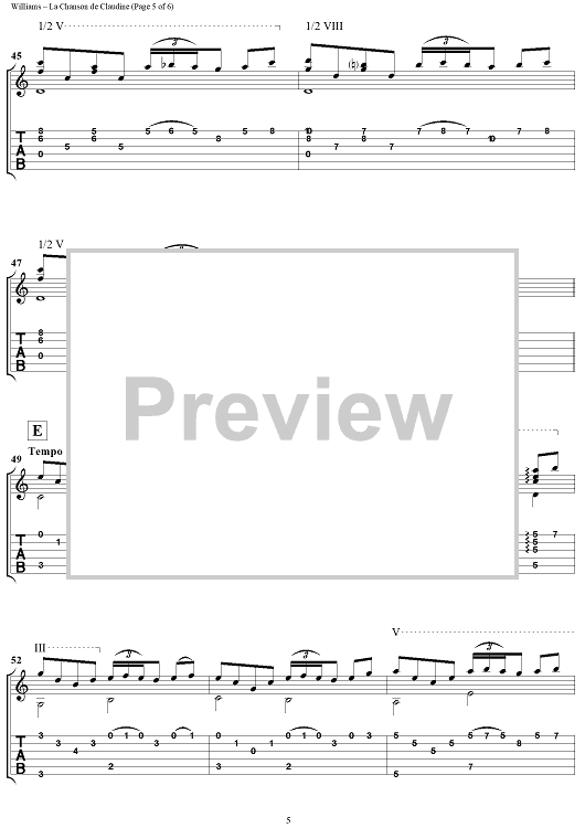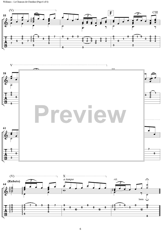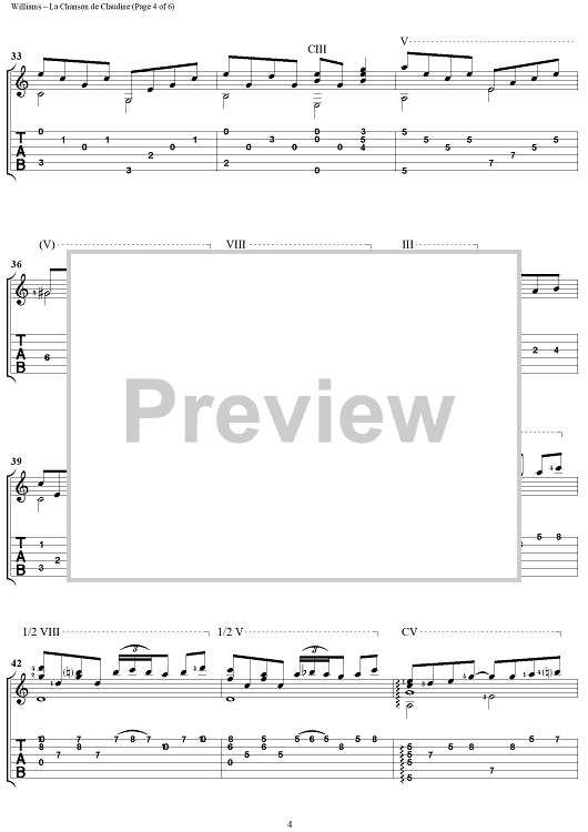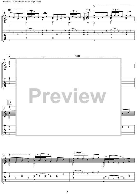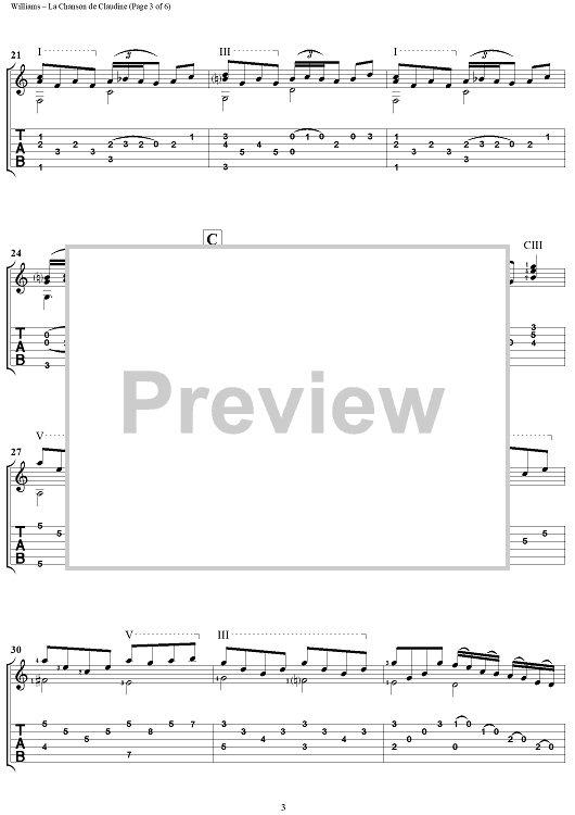 Digital Sheet Music for La Chanson de Claudine by Mason Williams scored for Guitar Tab; id:304365