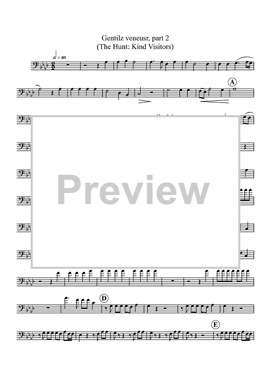 Digital Sheet Music for La Chasse - Trombone 2 by Clement Janequin, Roger McDuffie scored for Trombone Quartet; id:361241