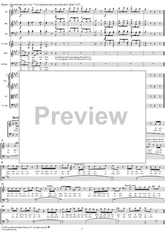 Digital Sheet Music for "Là ci darem la mano, là mi dirai di si", No. 7 from "Don Giovanni", Act 1, K527 - Full Score by Wolfgang Amadeus Mozart scored for Voice and Orchestra; id:291909